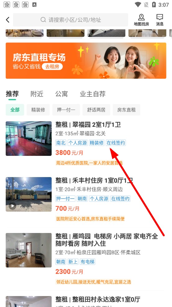 2、在租房頁面瀏覽房源列表,找到心儀的房源后,點擊房源標題進入詳情頁。