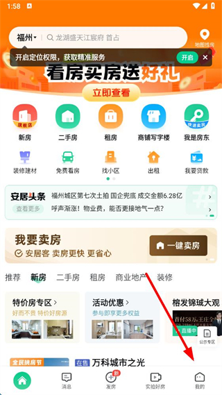1、打開安居客app,點擊右下角我的進入個人頁面。