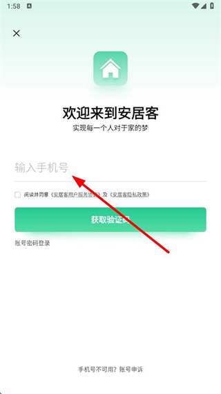 3、在注冊登錄頁面手機號輸入框內,輸入手機號碼。