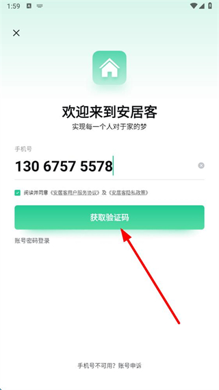 4、勾選閱讀并同意用戶服務協(xié)議及隱私政策,獲取驗證碼按鈕,輸入收到的驗證碼,即可完成賬號注冊。