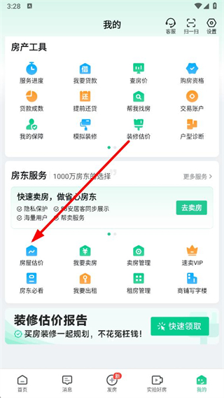 2、在個人頁面的房東服務板塊中,找到房屋估價選項并點擊。