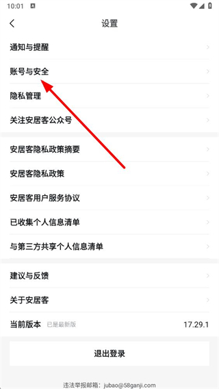 3、在設置界面,找到賬號與安全選項并點擊,進入賬號安全相關配置頁面。