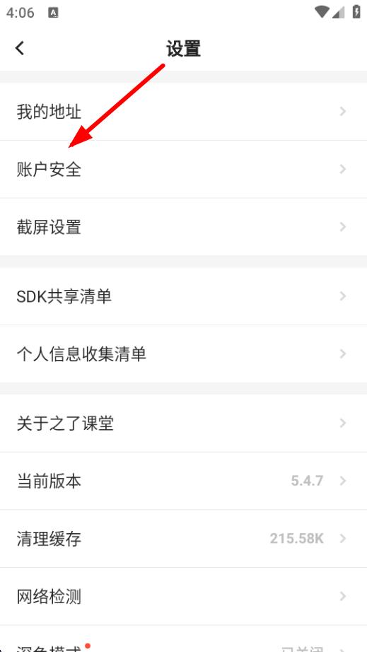 3、在設(shè)置的界面,需點(diǎn)擊賬戶安全按鈕,進(jìn)入賬戶安全頁面。
