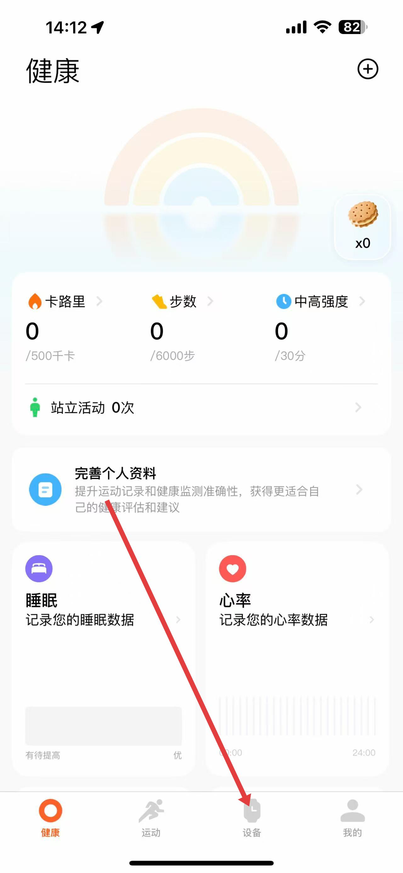 1、在手機(jī)應(yīng)用商店下載并打開小米運(yùn)動(dòng)健康A(chǔ)pp,進(jìn)入App首頁,點(diǎn)擊底部導(dǎo)航欄中的設(shè)備選項(xiàng)。