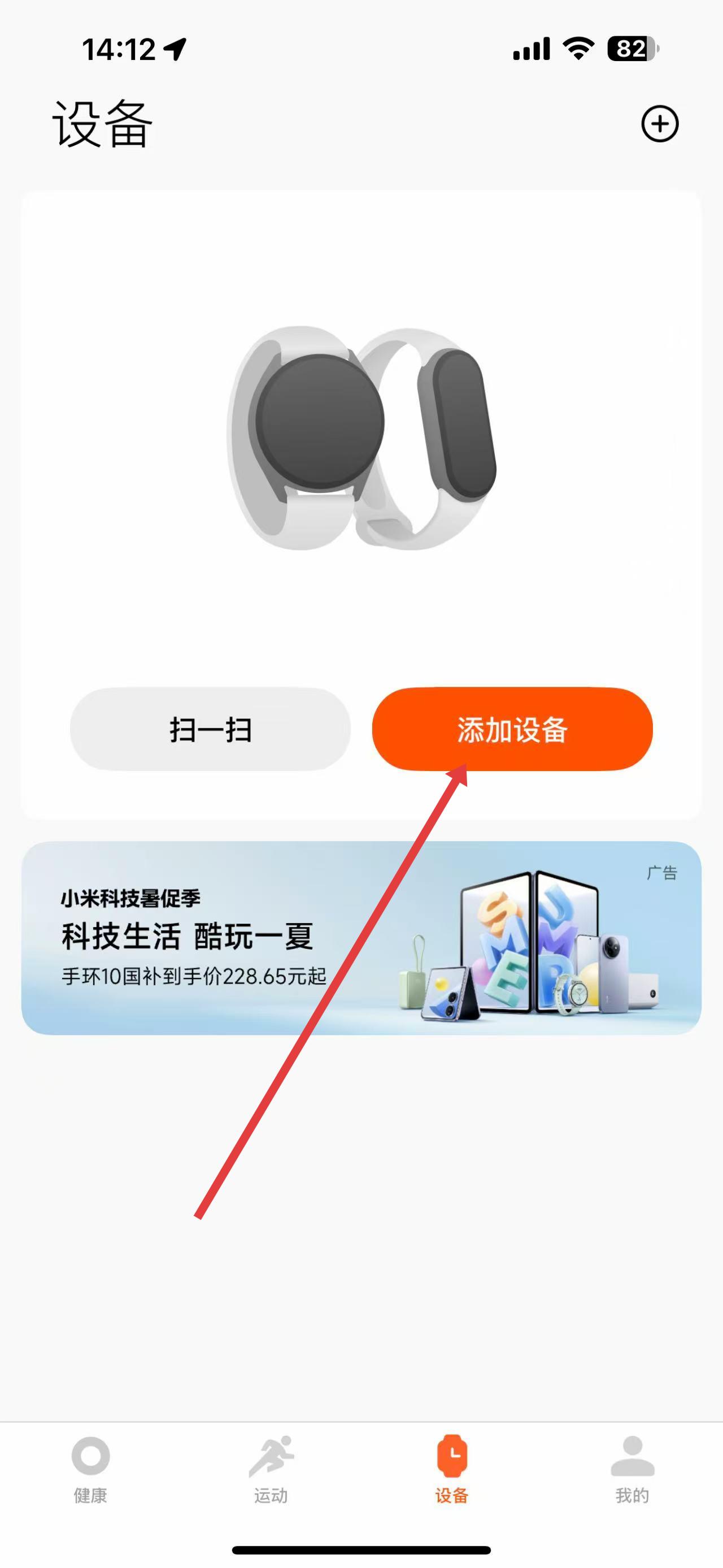 3、在添加設(shè)備界面,App會(huì)自動(dòng)搜索附近可連接的小米運(yùn)動(dòng)手環(huán),在設(shè)備列表中找到對(duì)應(yīng)的小米運(yùn)動(dòng)手環(huán)型號(hào),再根據(jù)提示完成連接。