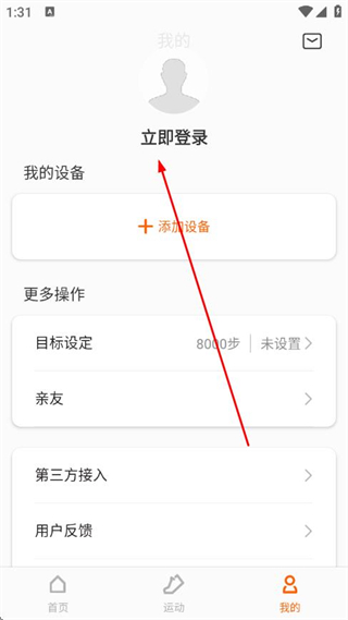 1、打開小米運(yùn)動(dòng)手環(huán)APP,在我的頁面點(diǎn)擊立即登錄。
