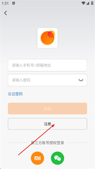 3、在登錄頁面點(diǎn)擊注冊,進(jìn)入注冊頁面。