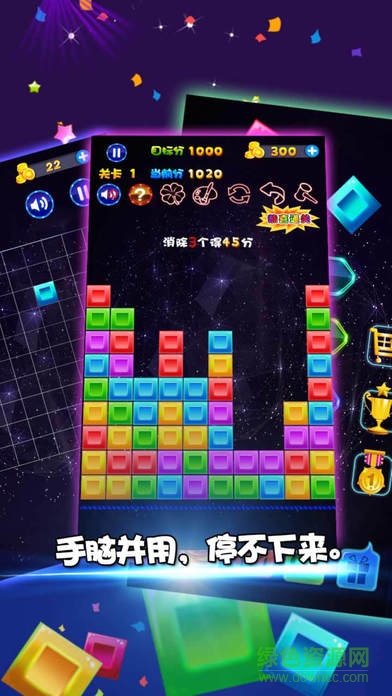 本游戲是一款引人入勝的益智游戲,玩法簡(jiǎn)單但有特色。簡(jiǎn)單易學(xué)且玩法有趣,是一款完美的手機(jī)益智游戲。在這款讓人入迷的益智游戲中,只需將模塊拖放到屏幕中,在垂直和水平方向創(chuàng)建并消除整行模塊,阻止模塊填滿整個(gè)屏幕。你可以通過全球排行同你的朋友比賽!沒有時(shí)間限制,無需顏色搭配!用匹配的模塊填滿所有網(wǎng)格,快來享受這款益智游戲吧!