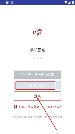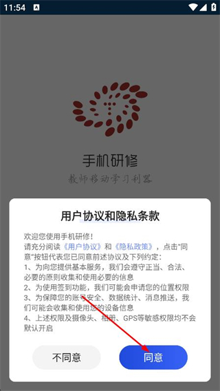 1、打開手機研修APP,在隱私條款彈窗中點擊同意。