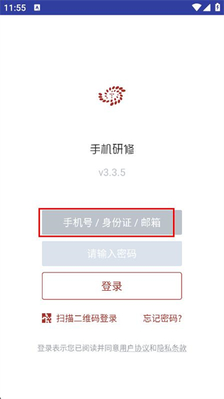 2、在登錄頁面,在輸入框中輸入手機號/身份證/郵箱。