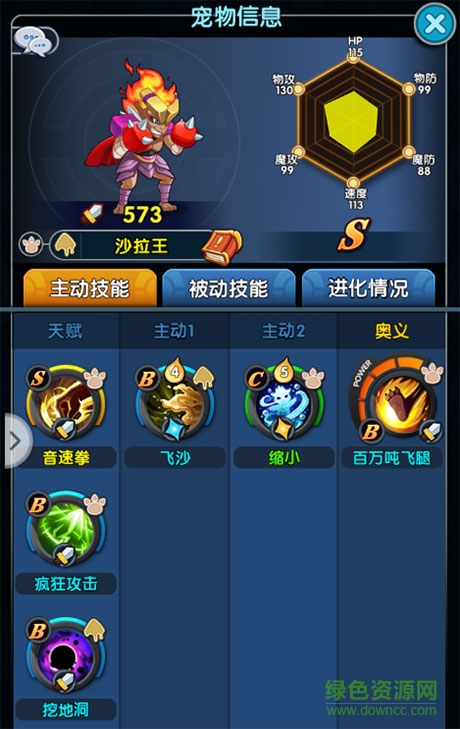 先分析一下這只寵物的潛力,通過六維屬性了解沙拉王的物攻以及速度僅僅是一般,主動(dòng)技能方面天賦中的音速拳是高威力高百分比技能,瘋狂攻擊速度追擊,挖地洞則較為一般。但是其被動(dòng)欄中沒有援助槽,5個(gè)全部為被動(dòng)槽,這點(diǎn)就很有操作性了。