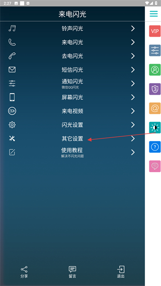 1、打開來電閃光APP,進(jìn)入到首頁內(nèi)點(diǎn)擊其他設(shè)置的功能按鈕。