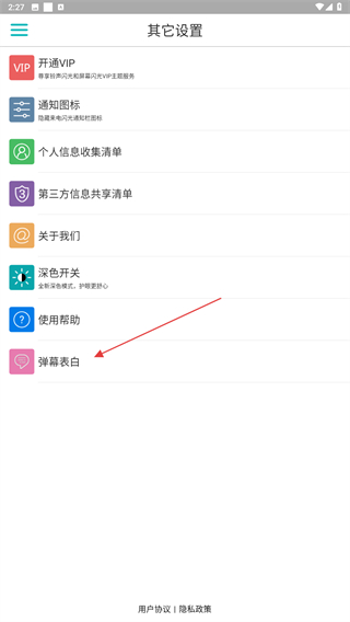 2、進(jìn)入到其他設(shè)置的頁面內(nèi),點(diǎn)擊彈幕表白的功能按鈕。