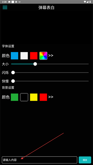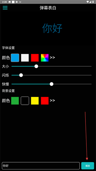 4、在輸入框內(nèi)輸入內(nèi)容后,再設(shè)置好顏色、大小、閃爍、快慢等,最后點(diǎn)擊播放的按鈕即可。