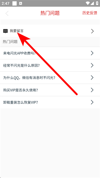 3、在熱門問題頁面,點(diǎn)擊我要留言選項(xiàng),進(jìn)入用戶反饋頁面。