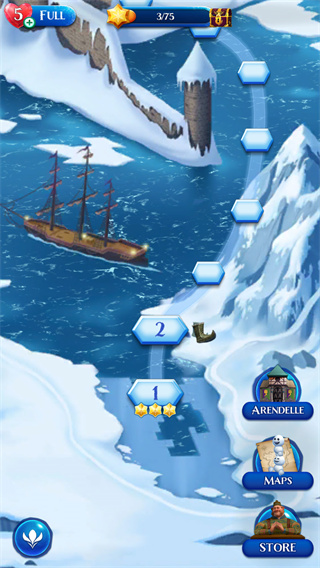每個(gè)角色獨(dú)有的升級(jí)系統(tǒng):使用安娜的“火焰消除”燒盡整排冰晶, 或者用埃爾莎的“冰雪粉碎”來(lái)消除所有同色冰晶!嘗試漢斯的“寶劍”擊碎冰晶,通過(guò)探密深入,獲得更多炫酷技能!