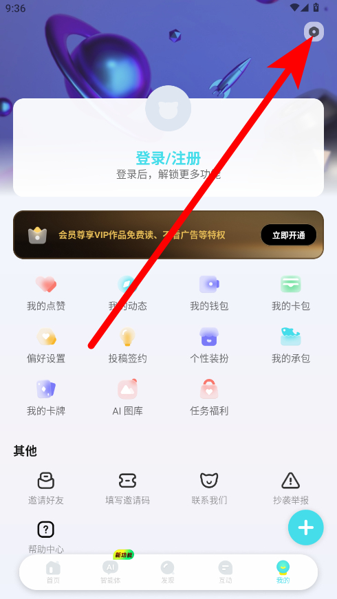 2、在個人頁面中,點擊右上角設置圖標,進入設置界面。
