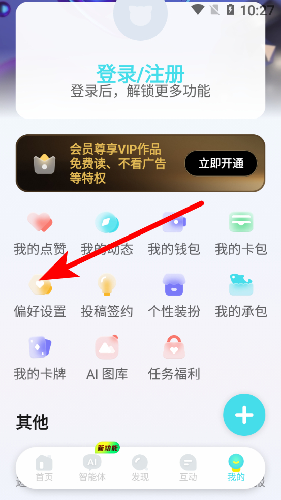 2、在個人中心界面,點擊偏好設置選項,進入偏好設置頁面。