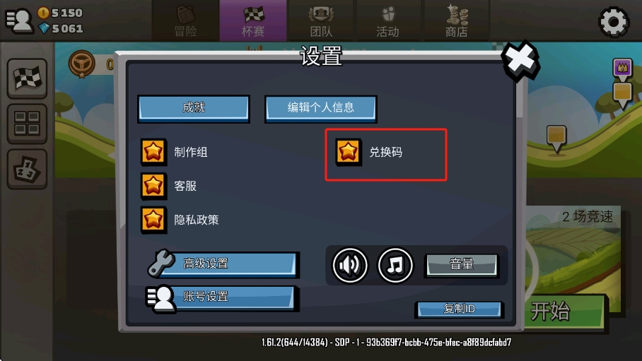 2、在游戲設(shè)置頁(yè)面中非常的一目了然,并且還可以直接在這里查看到兌換碼點(diǎn)擊進(jìn)入;