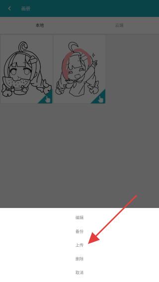 1、打開角蟲繪圖APP,進(jìn)入畫冊(cè)的頁(yè)面,找到要發(fā)布的作品。
