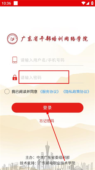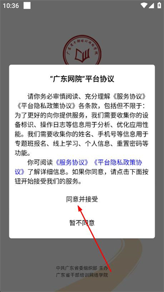 1、打開廣東網(wǎng)院,在彈窗中點擊同意并接受按鈕。