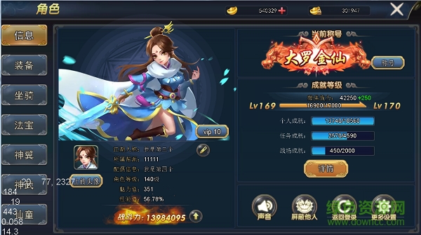 在這里可以看到角色的裝備信息,自己的戰(zhàn)斗力,屬性面板等。
