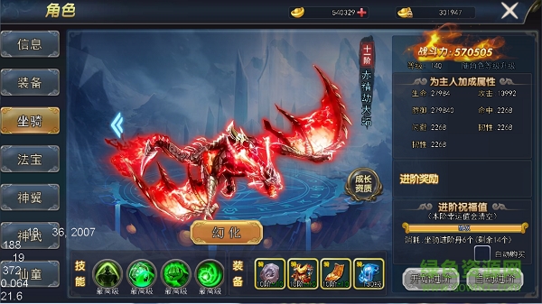 在這里可以看到自己坐騎的信息,隨著階數(shù)的提高,可以幻化成對應(yīng)階數(shù)的坐騎,如果不喜歡高階坐騎的形象,還可以自行幻化成比當(dāng)前坐騎階數(shù)低的形象,坐騎有四個技能,技能需要用到坐騎升級書來升級,裝備也有四種,分別是戰(zhàn)紋、靈甲、命符和仙符,成長資質(zhì)里,可以使用坐騎資質(zhì)丹和坐騎成長丹來提高坐騎屬性,升級書和裝備都可以通過跨服副本、劇情副本和世界首領(lǐng)等途徑獲取,坐騎資質(zhì)丹可以通過進(jìn)階副本獲得,而坐騎成長丹只能通過商城購買。