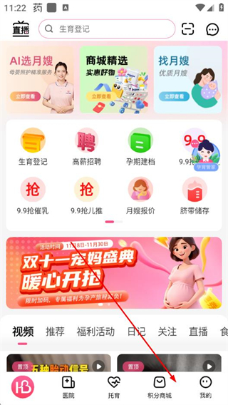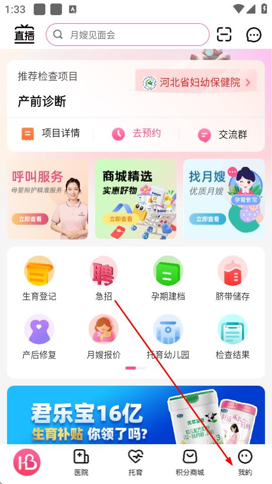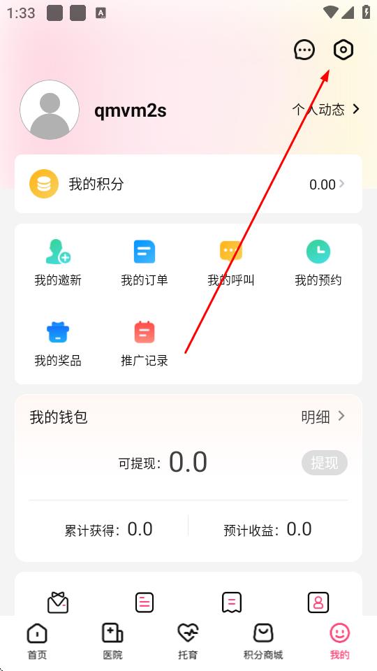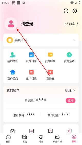 1、在孕健康App首頁點擊底部的我的選項,進入個人中心頁面。