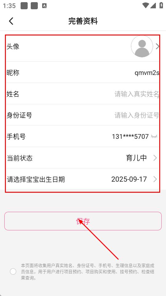 4、在完善資料頁面,可以修改信息,點擊保存按鈕,即可完成資料修改。