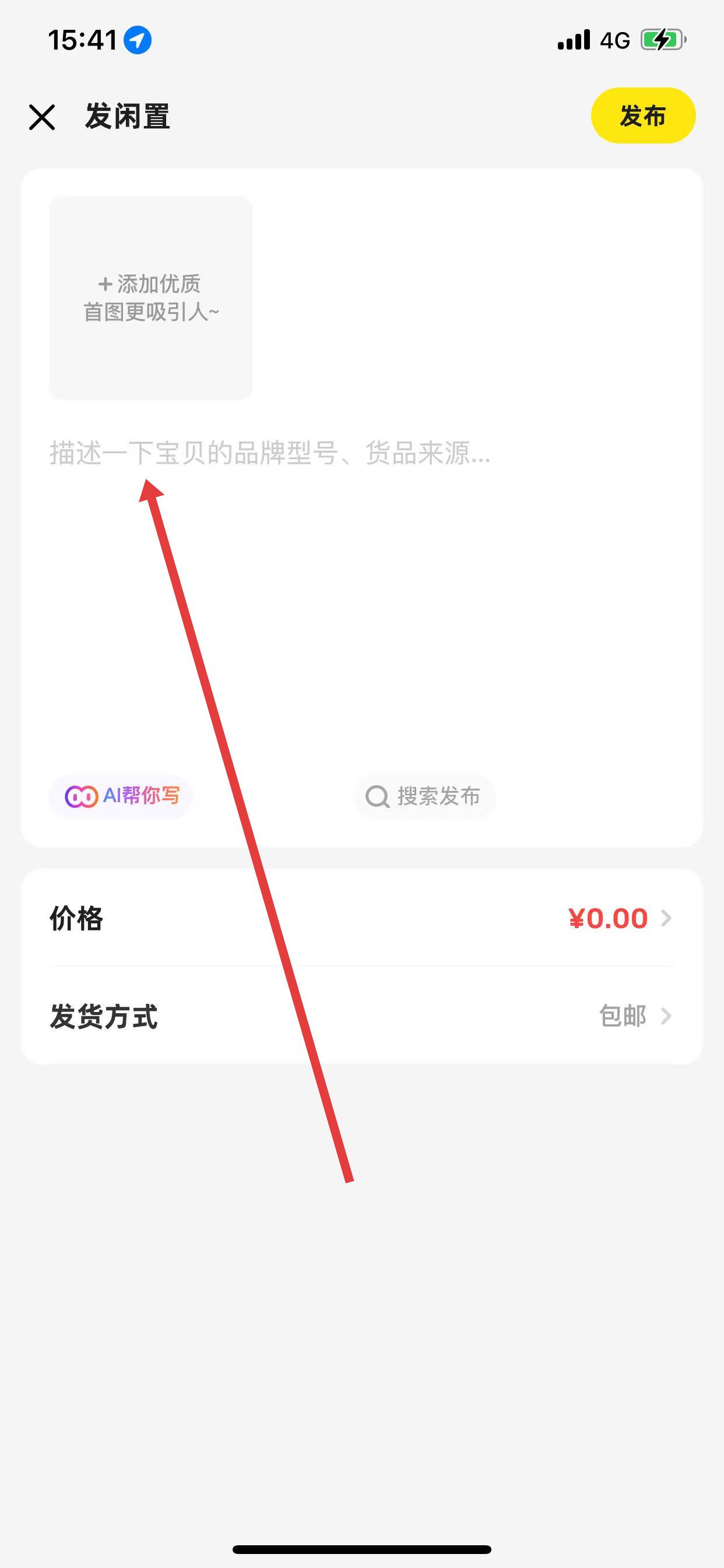 一、在首頁直接點擊“發(fā)布閑置”即可進入內(nèi)置頁面。