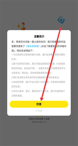 1、在打開咸魚app后,可以點擊彈窗中的同意按鈕,進入使用。
