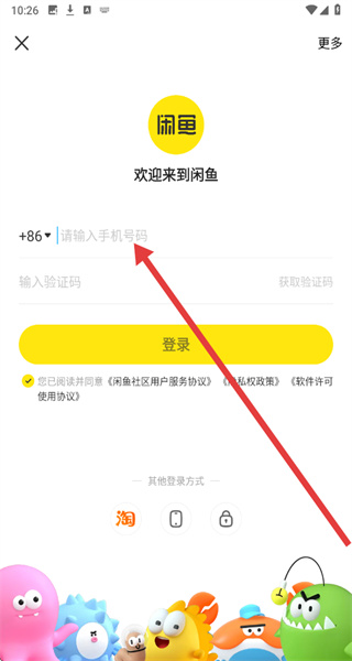 3、在登錄界面輸入手機號碼/閑魚會員名/郵箱和賬號密碼。