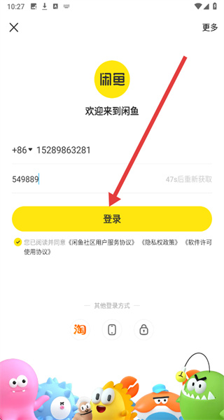 4、在填寫好手機號獲取到驗證碼后,點擊下方輸入框填寫進去即可點擊登錄按鈕,完成登錄。