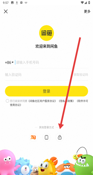 1、在閑魚主界面點擊“馬上登錄”,進入登錄方式選擇頁面。
