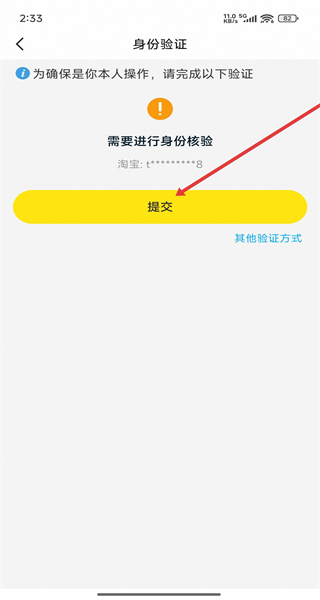 3、進入身份驗證頁面,點擊“提交”完成身份核驗。