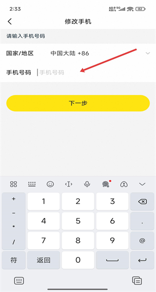 4、在修改手機頁面,輸入新的手機號碼,點擊“下一步”,按照提示完成后續(xù)操作,即可完成手機號修改。