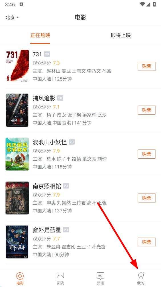 1、打開賣座電影app,點擊底部導航欄中的我的。