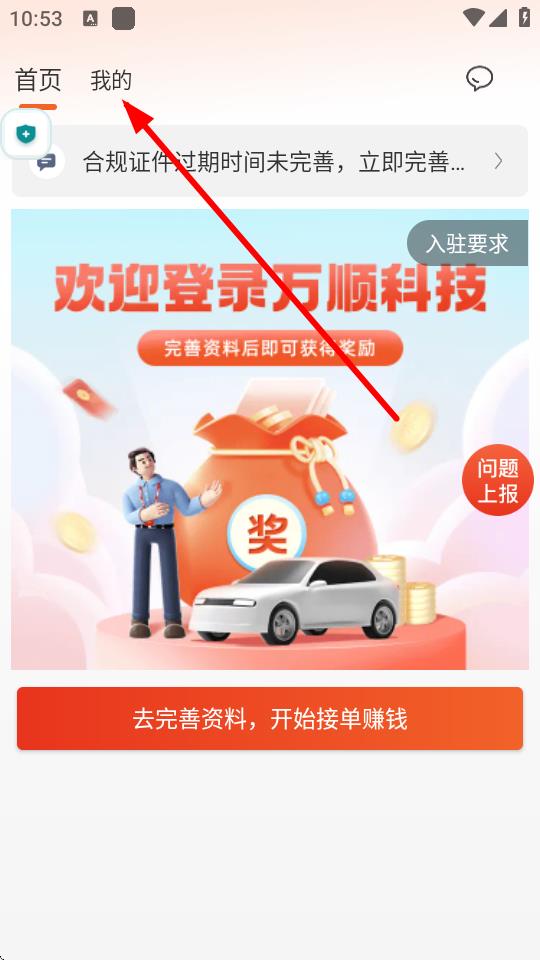 1、打開萬順車主APP,點擊頁面上方的我的選項,進入個人相關(guān)頁面。