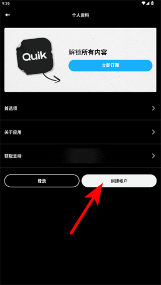 2、在個人資料界面,點擊創(chuàng)建賬戶按鈕。