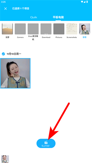 4、選擇好媒體文件后,點擊馬上開始,即可進入編輯流程,開始使用GoPro Quik進行視頻或圖片編輯。