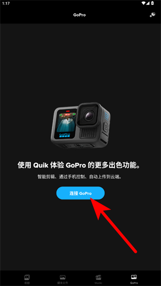 2、在GoPro界面中點擊連接GoPro,進入連接準(zhǔn)備環(huán)節(jié)。