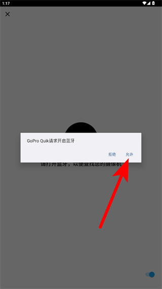 4、在彈出的藍牙權(quán)限請求中點擊允許,開啟藍牙以完成GoPro的連接操作。