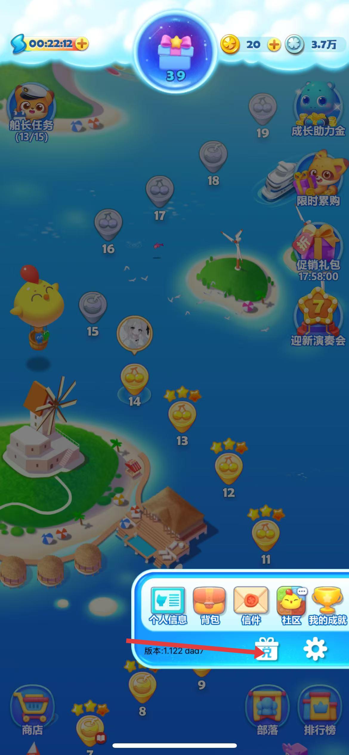 2、在游戲主界面下方的功能欄中,點擊禮物盒樣式的圖標,進入兌換中心。