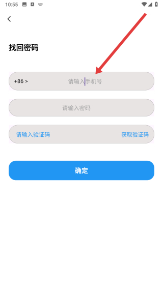 3、在跳轉(zhuǎn)到找回密碼頁面中,先點(diǎn)擊上方輸入框依次填寫手機(jī)號(hào)和新密碼。
