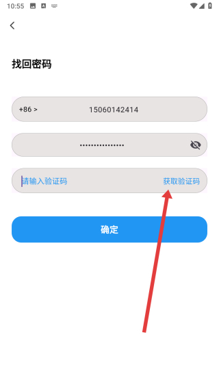 4、在填寫好上述信息后,點(diǎn)擊獲取驗(yàn)證碼按鈕,等待后填寫驗(yàn)證碼完成新密碼的設(shè)置。