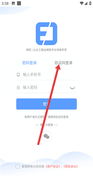 2、在登錄界面,點擊驗證碼登錄選項,切換到驗證碼登錄模式。