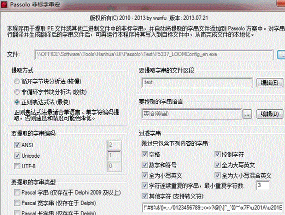 - 可選擇要提取字符串的 PE 文件區(qū)段和語言