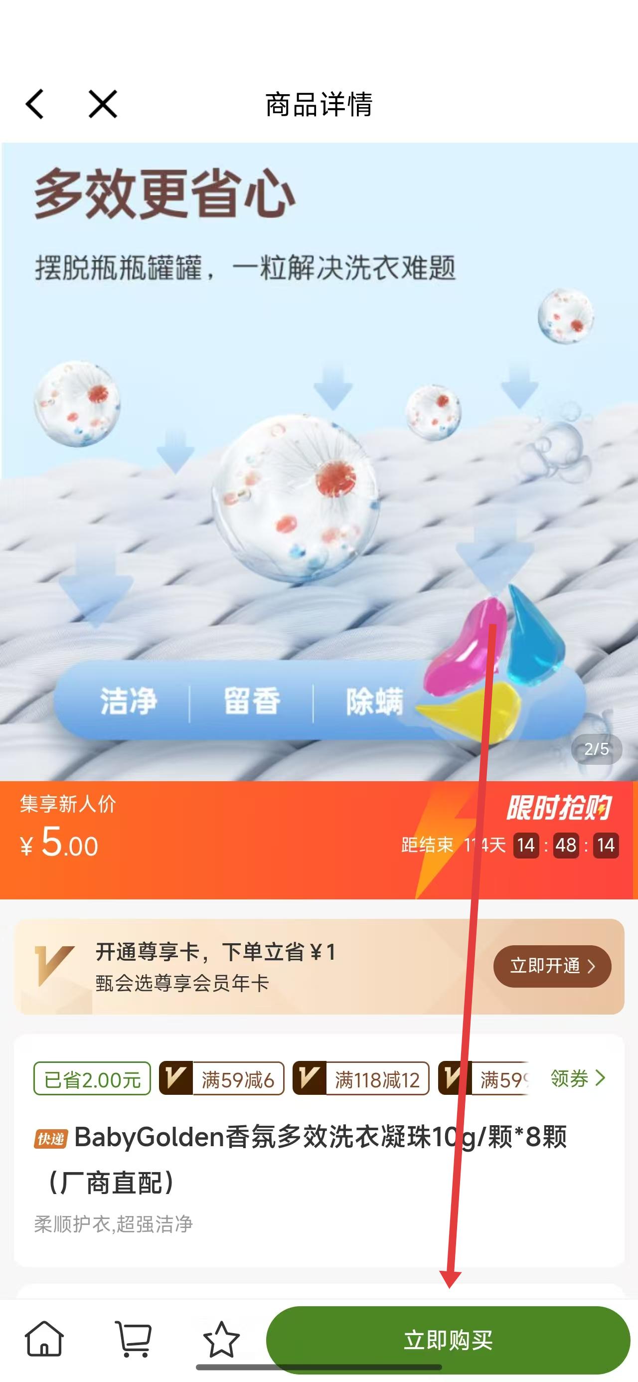 3、進(jìn)入到商品詳情頁(yè)面后,可以點(diǎn)擊下方的立即購(gòu)買按鈕進(jìn)行購(gòu)買操作。