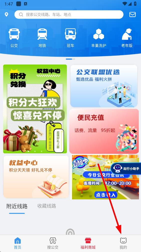 1、打開熊貓出行app,點(diǎn)擊底部導(dǎo)航欄我的按鈕,進(jìn)入相關(guān)界面。