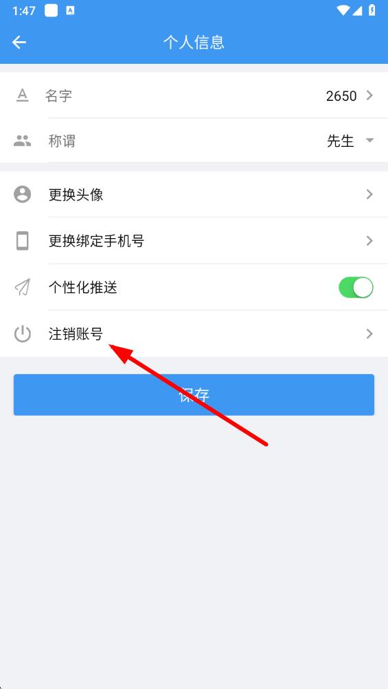3、在個人信息頁面里,找到并點(diǎn)擊注銷賬號選項(xiàng),進(jìn)入注銷賬號說明界面。